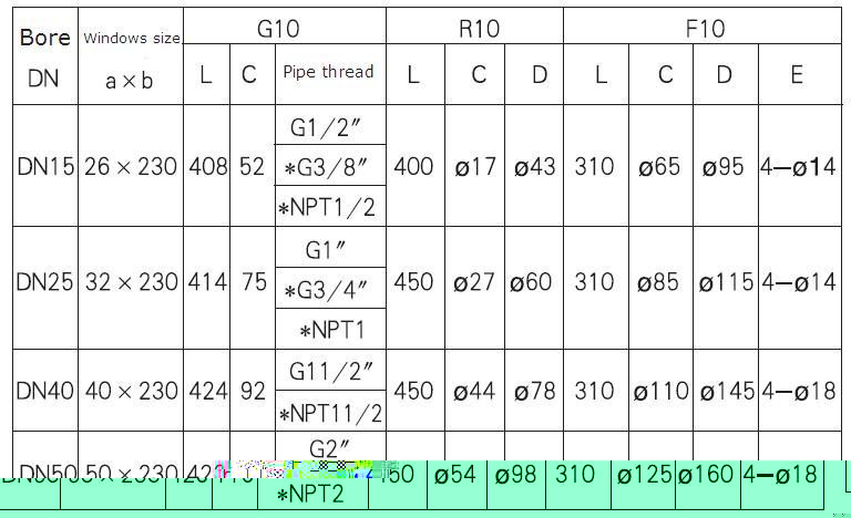 G/R/F10, 20, 30 glass tube rotameter has three types of connection: pipe thread (G10 type), hose pipe (R10 type) and flange ( F10 type). Its maximal working pressure and maximalworking temperature are higher than other glass tube rotameters with the same bore. It's divided into normal type (Measuring general noncorrosive fluid) and corrosion resistant type (Measuring corrosive fluid.). The meter is featured with compactness, light structure, nice looking, convenient maintenance, safe and reliability, easy installation.The flange of F10 type can rotate to be aligned with the pipe holes on the spot vessel.