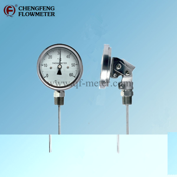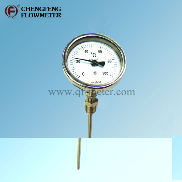 The bimetallic thermometer is a on site measurement instrument suitable for measuring middle and high temperature, and can be used to measure directly the temperature of gasses and liquids. Compared with glass thermometer, it is featured with no mercury harmness, distinct reading, strong and durable and other advantages. Our company produces multipurpose bimetallic thermometers. The types and models are complete. The quality is high and reliable. It can be used widely in industry, agriculture, national defence and scientific research etc.